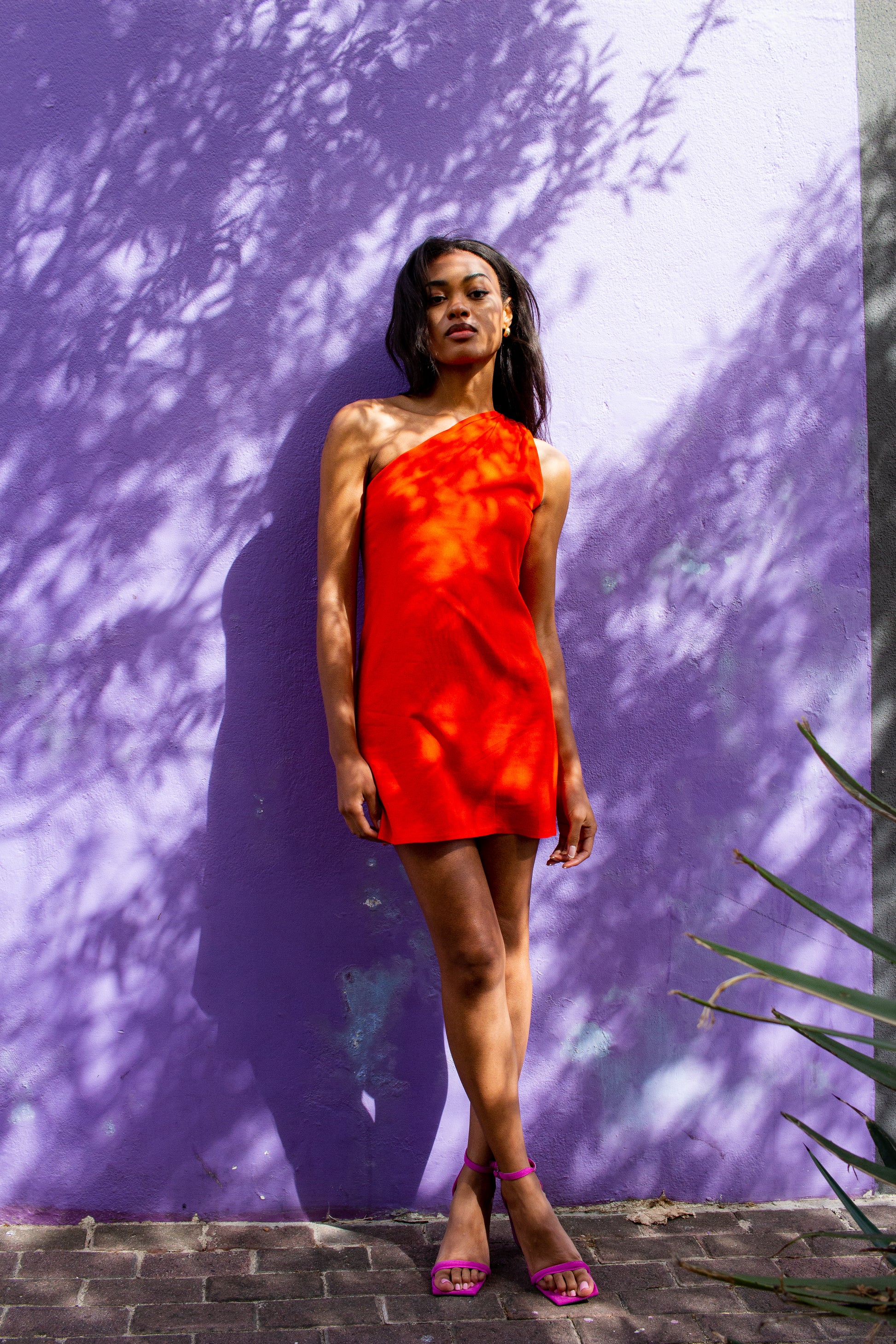 - She pops in Tangerine toned linen