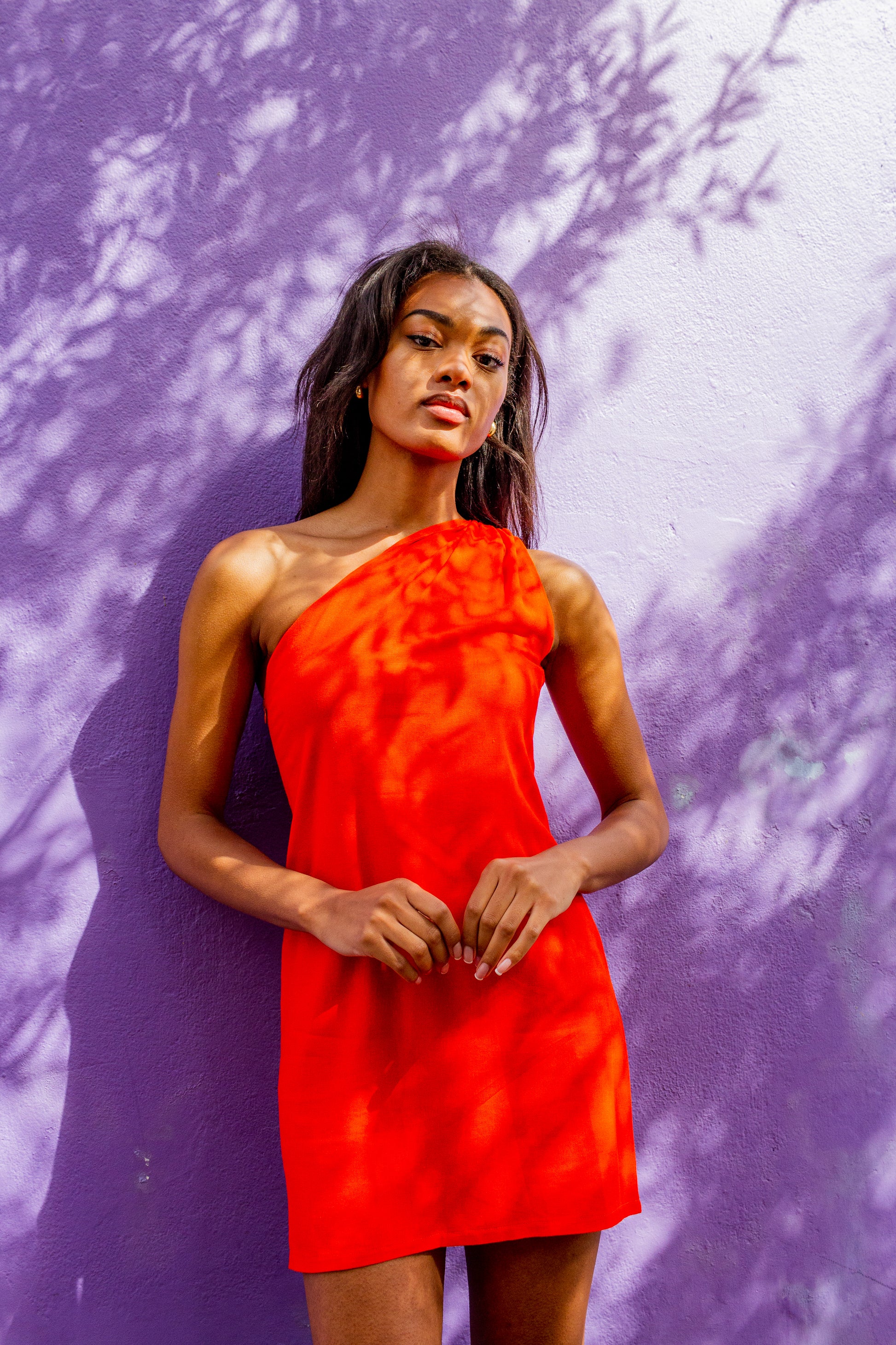 - Length : Our beautiful model is super tall. The length has been adjusted to sit as a short dress above the knee on most